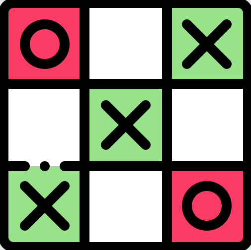 Essa linha pode ser na horizontal, vertical ou na diagonal. Se todos os espaços forem preenchidos e ninguém conseguir alinhar três símbolos, o jogo termina empatado!