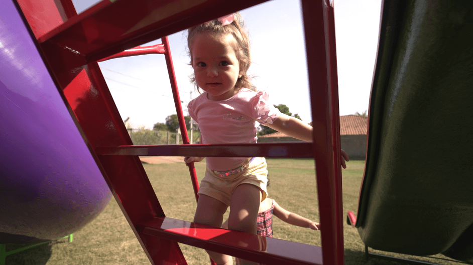 Subir as escadas, se posicionar e deslizar exigem controle corporal. A cada descida, a criança trabalha o equilíbrio e a coordenação motora, habilidades essenciais para o dia a dia.